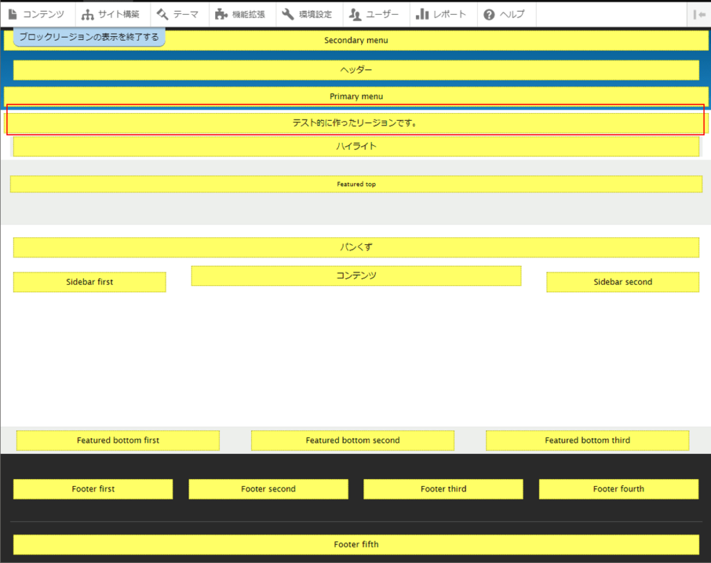 表示されましたね!これで、自分でhtml上にリージョンを作ることができたわけです。