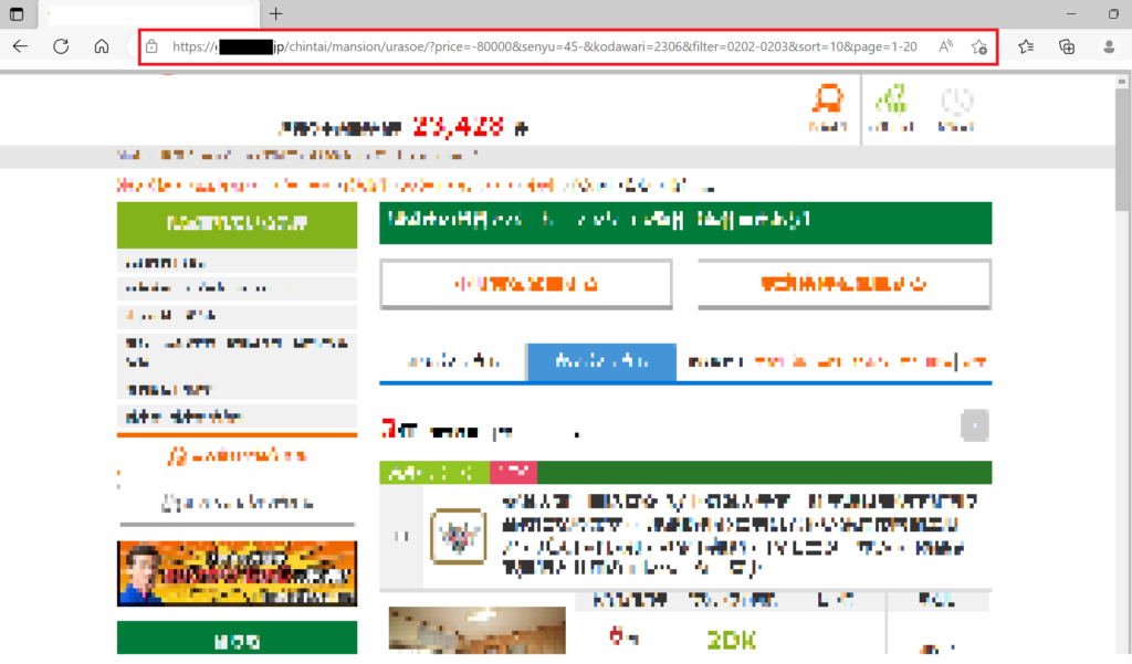 つまり、URLパラメーターを含めたURLでアクセスることで、希望条件の賃貸物件がいつでも表示できるということです。
