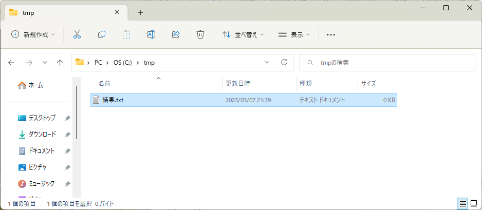 Cドライブに適当なフォルダ「tmp」を作って、その中に「結果.txt」というファイルを作ります。