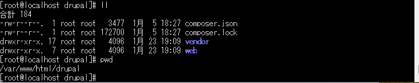 コマンドを実行したディレクトリに「drupal」というディレクトリがあったため中身を確認。